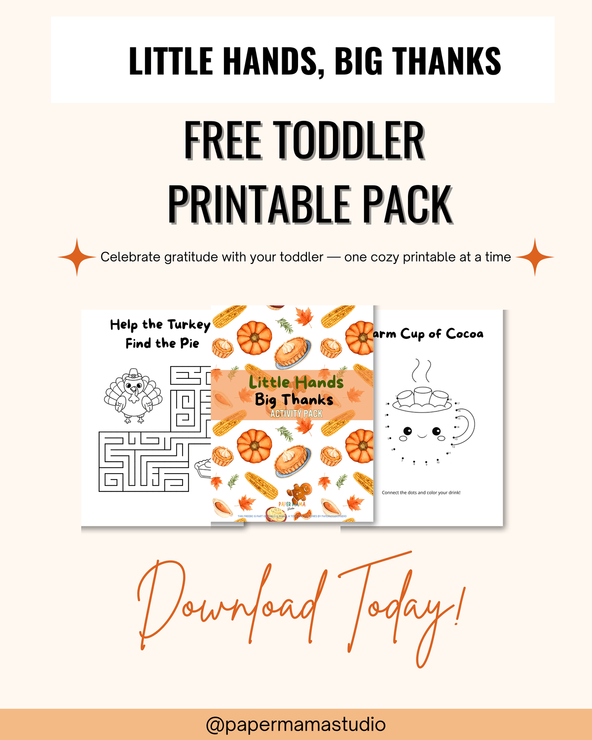 Enjoy coloring, tracing, and cozy cocoa with this 5-page Thanksgiving Activity Pack.
